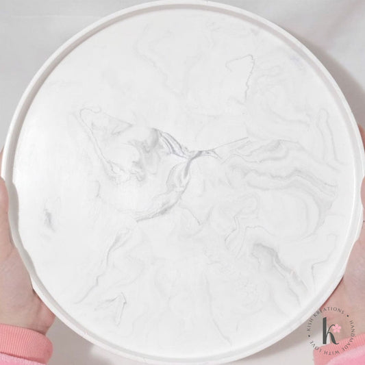 190mm Large Round Tray | Elegant White with Gold Flakes Design