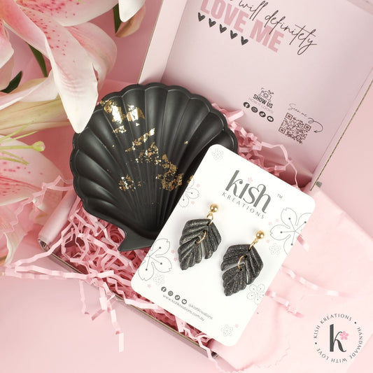 [Bundle] Black Elegant Feerie Dangle Earrings with Matching Shell Jewellery Dish