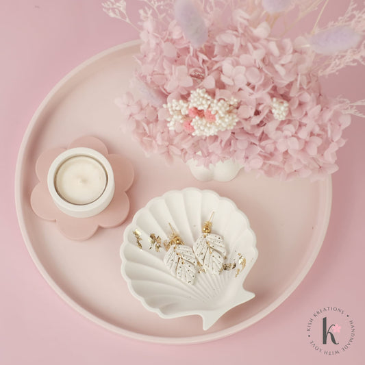 [Bundle] White Elegant Feerie Dangle Earrings with Matching Shell Jewellery Dish
