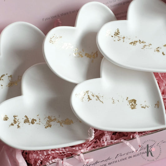 Heart Ring Dish | Elegant White with Gold Flakes Design