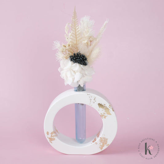 Round Flower Vase | Elegant White with Gold Flakes Design