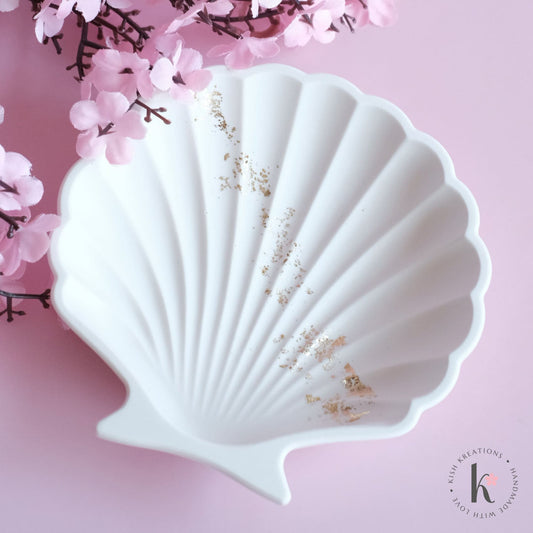 Shell Trinket Dish | Elegant White with Gold Flakes Design