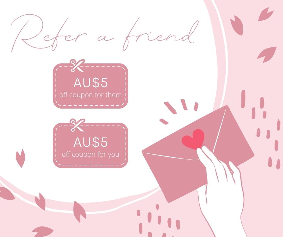 Give your friends AU$5 coupon and when your friend makes a purchase, you'll get AU$5 too. Share your link with friends and become part of the Kish Kreations Family 🌸.